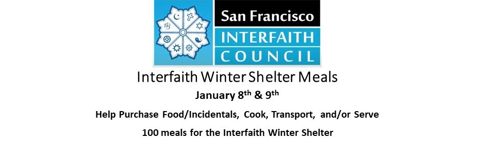 Noe Valley Ministry and Bethany Church are collaborating to provide 100 meals for the unhoused through the Interfaith Shelter program on Monday January 8th and Tuesday January 9th. We're so grateful for any volunteers!